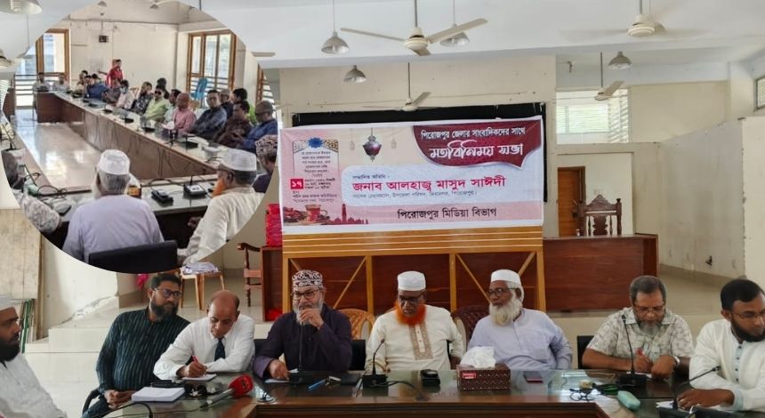 মত বিনিময় সভায় সাংবাদিক ছাড়াও উপস্থিত ছিলেন জেলা জামায়াতের নায়েবে আমীর মাওলানা আব্দুররব, জেলা সেক্রেটারী মোঃজহিরুলহক, পিরোজপুর পৌর আমীর মোঃআব্দুর রাজ্জাক প্রমুখ।