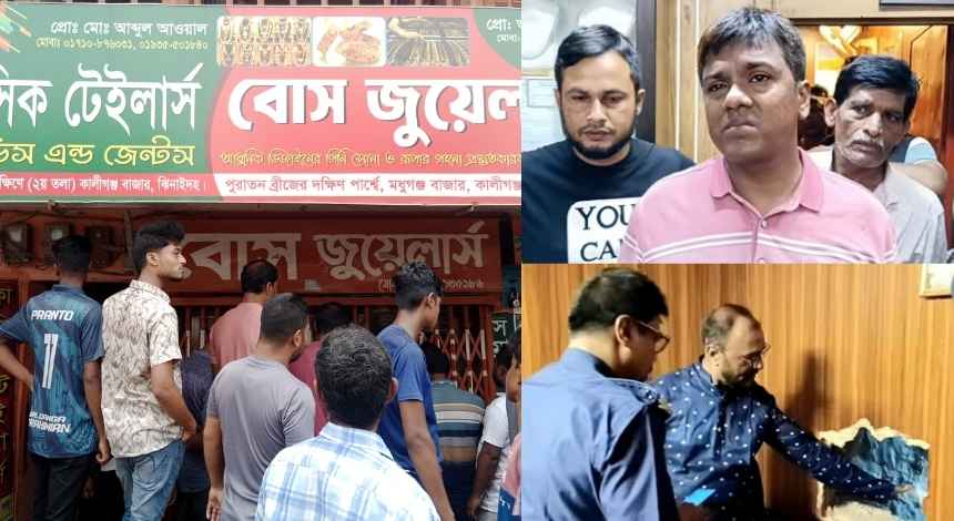 ঝিনাইদহের কালীগঞ্জ শহরে ঘটেছে দুঃসাহসিক চুরির ঘটনা। শহরের জনতা মোড়ে অবস্থিত বোস জুয়েলার্স নামে একটি স্বর্ণের দোকানে পেছনের দেওয়াল কেটে প্রবেশ করে চোরেরা ৮ ভরি স্বর্ণ ও নগদ ১.৫ লাখ টাকা সহ প্রায় ১৫ লাখ টাকার মালামাল নিয়ে পালিয়ে যায়।