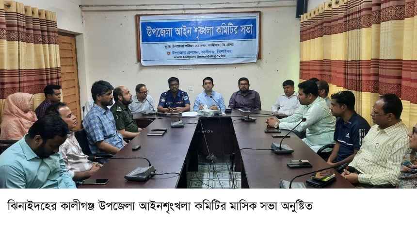 ঝিনাইদহের কালীগঞ্জ উপজেলা আইনশৃংখলা কমিটির মাসিক সভা অনুষ্টিত হয়েছে। উপজেলা নির্বাহী অফিসার দেদারুল ইসলামের সভাপতিত্বে সভাতে ইদুল ফিতর উপলক্ষে চুরি, ছিনতাই মাদক প্রতিরোধ, শহরে যানজট নিরসন ও আইনশৃংখলা নিয়ন্ত্রনে মোবাইল কোট পরিচালনা সহ বিভিন্ন আইনি পদক্ষেপ গ্রহণের সিদ্ধান্ত হয়।