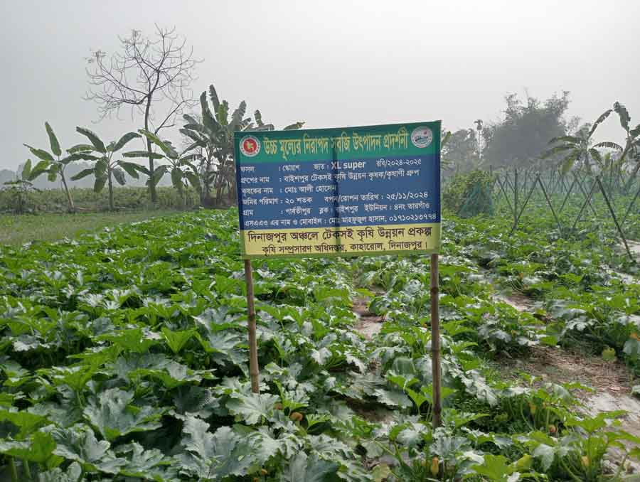 দিনাজপুরের কাহারোল উপজেলায় প্রথমবারের মতো উচ্চ মূল্যের সবজি স্কোয়াশের চাষ শুরু হয়েছে, যা ব্যাপক সাড়া ফেলেছে। দিনাজপুর অঞ্চল টেকসই কৃষি উন্নয়ন প্রকল্পের আওতায় এবং উপজেলা কৃষি সম্প্রসারণ অধিদপ্তরের উদ্যোগে তাঁড় গাও ইউনিয়নের বাইশপুর গ্রামে কৃষক মো. আলী হোসেন এই প্রদর্শনী করেছেন।
