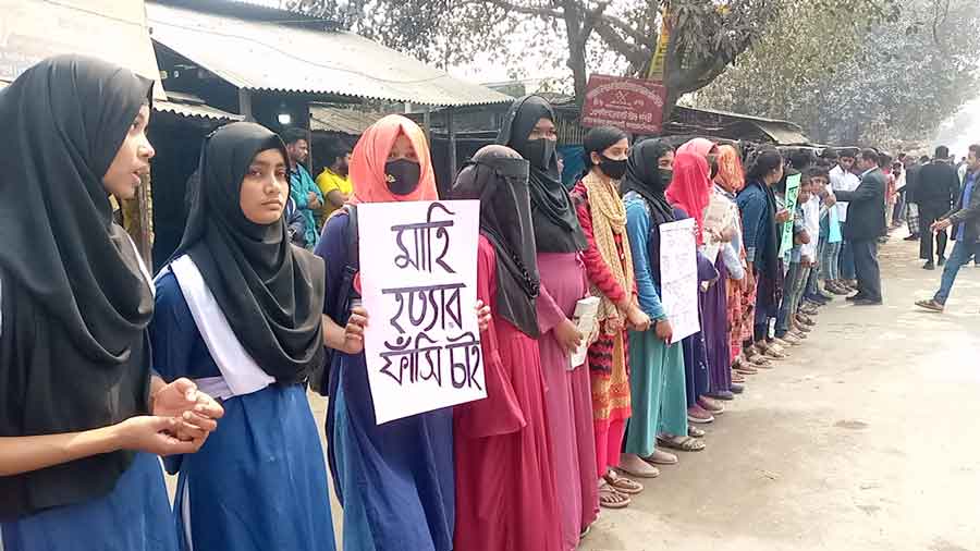 কাহারোলে বহুল আলোচিত মাহী হত্যার প্রতিবাদে মানববন্ধন ও খুনির ফাঁসির দাবি