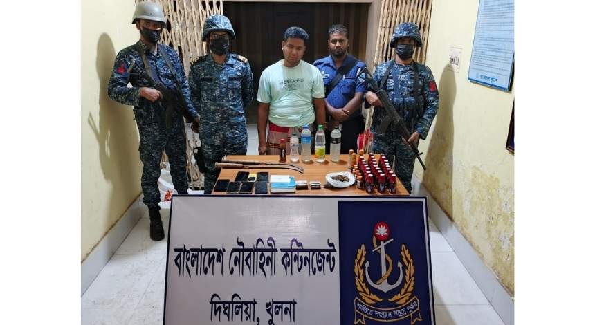 খুলনার দিঘলিয়ায় নৌবাহিনীর অভিযানে চিহ্নিত মাদক ব্যবসায়ী মাদক ও দেশীয় অস্ত্র সহ আটক