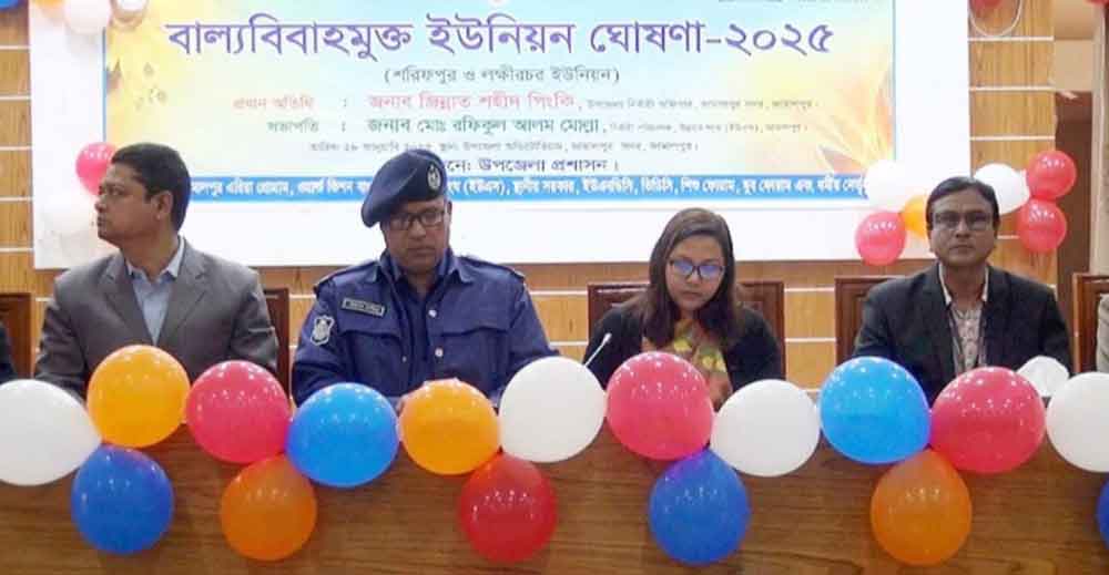 জামালপুর সদরের শরিফপুর ও লক্ষ্মীরচর ইউনিয়নকে বাল্যবিবাহ মুক্ত ঘোষণা করা হয়েছে। সদর উপজেলা নির্বাহী কর্মকর্তা জিন্নাত শহীদ পিংকি এই দুটি ইউনিয়নকে বাল্যবিয়ে মুক্ত ঘোষণা করেন।