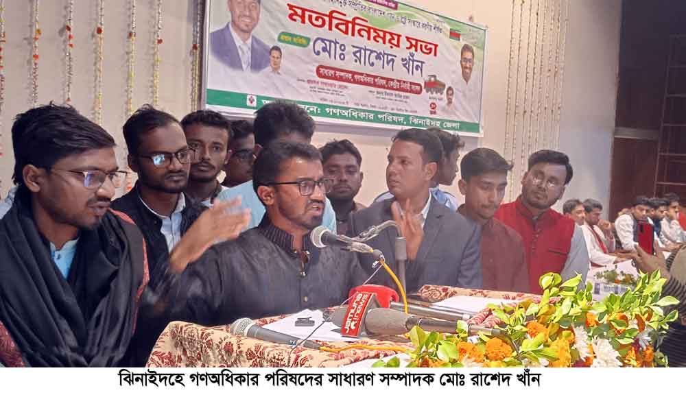 গণঅধিকার পরিষদ ঝিনাইদহ জেলা শাখার সভাপতি প্রভাষক সাখাওয়াত হোসেনের সভাপতিত্বে আয়োজিত এই সভায় আরও বক্তব্য রাখেন কেন্দ্রীয় নেতা এবিএম আশিকুর রহমান, বিল্লাল হোসেন, ঝিনাইদহ জেলা সাধারণ সম্পাদক ইকবাল জাহিদ রাজন, রাজশাহী বিভাগীয় সাংগঠনিক সম্পাদক সুমন কবির, খুলনা বিভাগীয় সাংগঠনিক সম্পাদক আশিক ইকবাল ও রিহান উদ্দীন রায়হান।