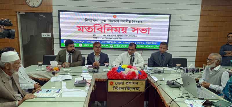 ঝিনাইদহে নিত্যপণ্যের মুল্য নিয়ন্ত্রণে করণীয় বিষয়ে মতবিনিময় সভা অনুষ্ঠিত হয়েছে। কনজ্যুমার এসোসিয়েশন অব বাংলাদেশ (ক্যাব) এর আয়োজনে জেলা প্রশাসকের সম্মেলন কক্ষে সোমকার সকালে এ সভা অনুষ্ঠিত হয়।