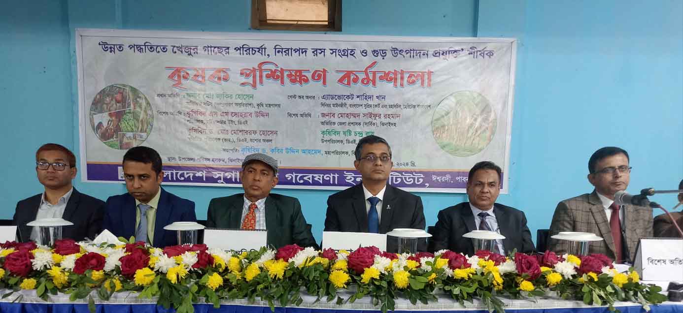 ঝিনাইদহে উন্নত পদ্ধতিতে খেজুর গাছের পরিচর্যা, নিরাপদ রস সংগ্রহ ও গুড় উৎপাদন বিষয়ক এক প্রশিক্ষণ কর্মশালা অনুষ্ঠিত হয়েছে। শনিবার সকালে সদর উপজেলা অডিটোরিয়ামে এ কর্মশালা অনুষ্ঠিত হয়। এতে জেলার ১০০ জন উদ্যোক্তা ও খেজুর গাছী অংশগ্রহণ করেন। প্রশিক্ষণ কর্মশালার আয়োজন করে বাংলাদেশ সুগার ক্রপ গবেষণা ইনস্টিটিউট (বিএসআরআই), পাবনা।