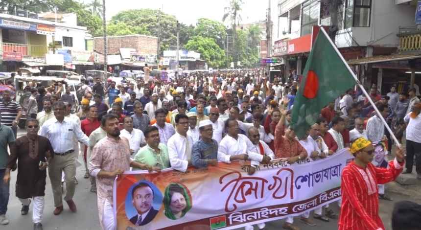 এদিকে সকাল ১০ টায় ঝিনাইদহে জেলা বিএনপির আয়োজনে উজির আলী স্কুল মাঠ থেকে একটি র্যালি বের করা