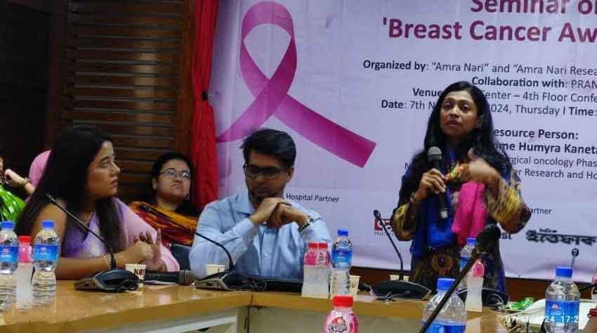 "আমরা নারী" এবং "আমরা নারী রিসার্চ অ্যান্ড ডেভেলপমেন্ট" এর যৌথ উদ্যোগে ঢাকা বিশ্ববিদ্যালয়ের বাংলাদেশ কুয়েত মৈত্রী হলের অডিটোরিয়ামে স্তন ক্যান্সার সচেতনতা বিষয়ক একটি সেমিনার অনুষ্ঠিত হয়। বৃহস্পতিবার, ২৮ নভেম্বর বিকেল ৩টায় আয়োজিত এই সেমিনারে উপস্থিত ছিলেন বিভিন্ন শ্রেণির বিশেষজ্ঞ এবং শিক্ষার্থীরা। সেমিনারটি সঞ্চালনা করেন ঢাকা বিশ্ববিদ্যালয়ে পালি অ্যান্ড বুদ্ধিস্ট স্টাডিজে অধ্যায়নরত জান্নাতুল ইসলাম ননীমা।