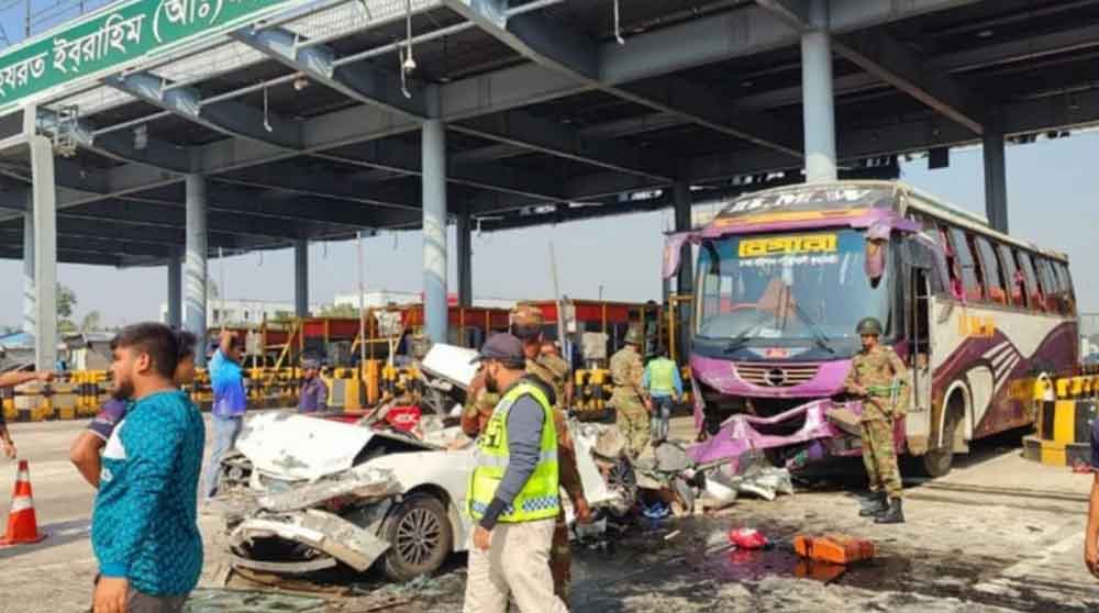 ঢাকা-মাওয়া এক্সপ্রেসওয়েতে বাসের ধাক্কায় প্রাইভেটকার দুমড়েমুচড়ে নিহত ৫, আহত ১০