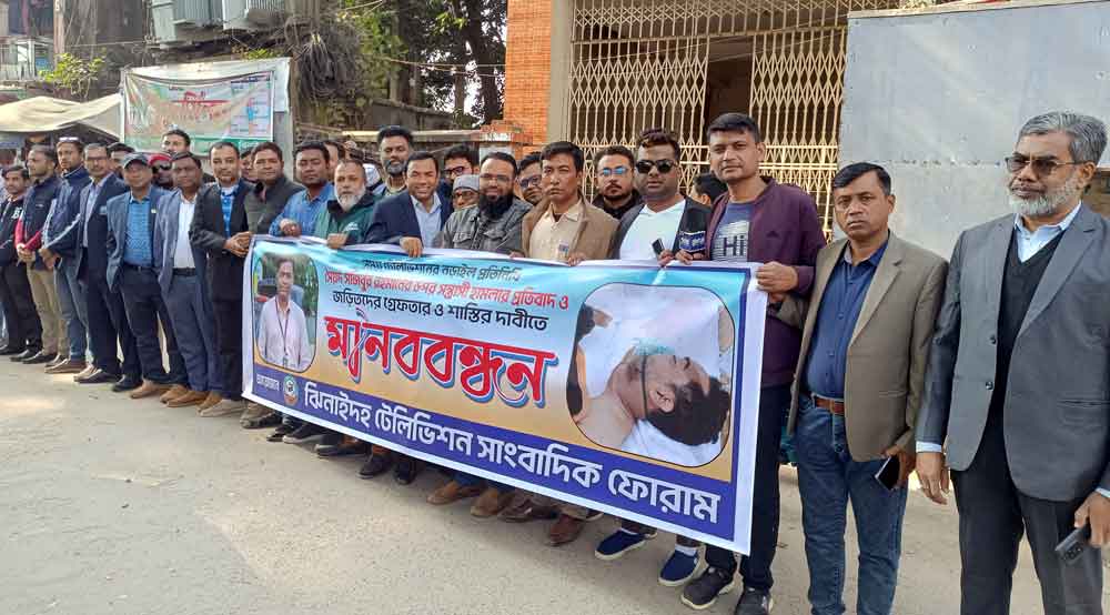 এতে ব্যানার ফেস্টুন নিয়ে ঝিনাইদহ টেলিভিশন সাংবাদিক ফোরাম, ঝিনাইদহ প্রেসক্লাবসহ জেলায় কর্মকর্তা প্রিন্ট ও ইলেক্ট্রনিক্স মিডিয়ার সাংবাদিকরা অংশ নেয়। ঘন্টা ব্যাপী চলা এই কর্মসূচীতে টেলিভিশন সাংবাদিক ফোরামের সভাপতি শিপুল জামান'র সভাপতিত্বে কর্মসূচীতে বক্তব্য রাখেন ঝিনাইদহ প্রেসক্লাবের সভাপতি আসিফ ইকবাল কাজল, সাবেক সভাপতি ও একুশে টেলিভিশনের ঝিনাইদহ প্রতিনিধি এম রায়হান, সিনিয়র সাংবাদিক বিমল কুমার সাহা, আমিনুর রহমান টুকু, প্রেসক্লাবের সাধারণ সম্পাদক আমিনুল ইসলাম লিটন, চ্যানেল আই'র ঝিনাইদহ প্রতিনিধি শেখ সেলিম, প্রেসক্লাবের সাবেক সাধারণ সম্পাদক ও এসএ টিভির ঝিনাইদহ প্রতিনিধি ফয়সাল আহমেদ' বৈশাখী টেলিভিশনের ঝিনাইদহ প্রতিনিধি রফিকুল ইসলাম, চ্যানেল টোয়েন্টিফো'র রিপোর্টার সাদ্দাম হোসেন, গ্লোবাল টিভির ঝিনাইদহ প্রতিনিধি মেহেদি হাসান জিকু, সাংবাদিক এম এ জলিল। অনুষ্ঠান পরিচালনা করেন টেলিভিশন সাংবাদিক ফোরামের সাধারণ সম্পাদক রাজিব হাসান ও সময় টিভির রিপোর্টার লোটাস রহমান সোহাগ।