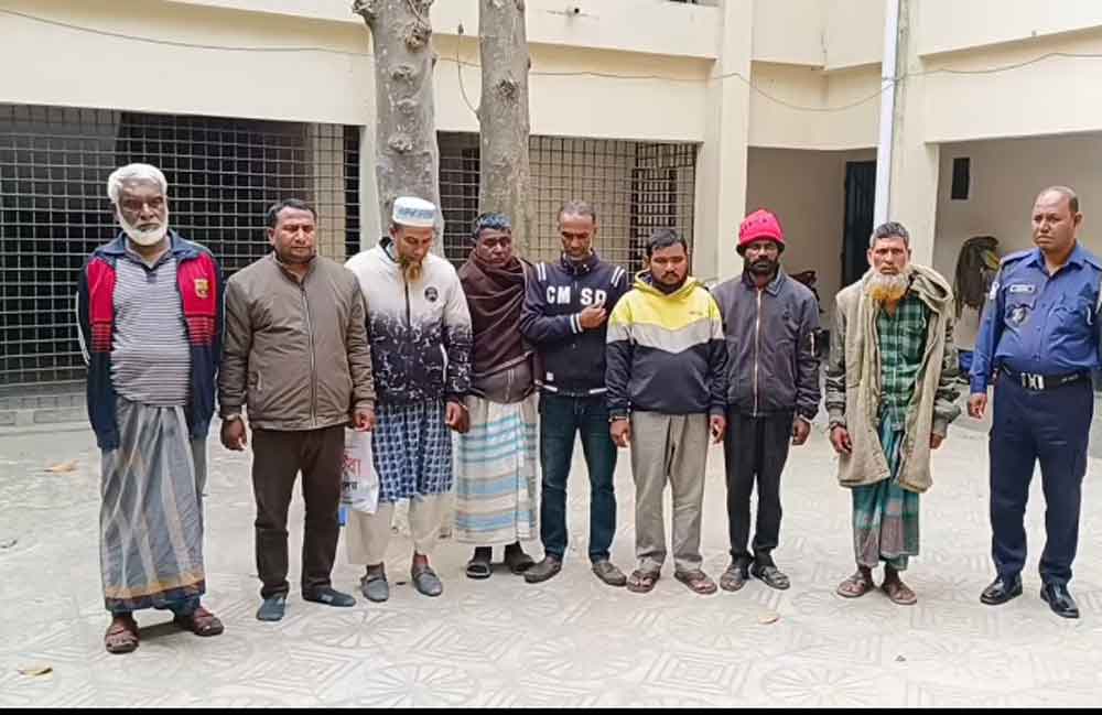 আটককৃতরা হলেন- পাথালিয়া পশ্চিমপাড়া এলাকার মৃত আলী আকবরের ছেলে আক্রাম হোসেন (৫২), মৃত কেরামত আলীর ছেলে আব্দুল মান্নান (৪৮), মৃত সুরুজ আলীর ছেলে মাহমুদুর রহমান (৪৫) ও মৃত গুল মাহমুদের ছেলে আব্দুল মজিদ, পাথালিয়া গুয়াবাড়ি এলাকার মৃত ইন্তাজ আলীর ছেলে মো. হেলাল উদ্দিন (৪৫), পাথালিয়া মধ্যপাড়া এলাকার মৃত আজিজুল হকের ছেলে ও মেয়র ছানুর অফিস সহকারী মো.রাশেদুল ইসলাম (৯), কম্পপুর মধ্যপাড়া এলাকার ইসমাইল হোসেনর ছেলে মো. শামীম (৩৮) এবং বসাকপাড়া এলাকার মনিন্দ্র চন্দ্র দের ছেলে বিজয়।