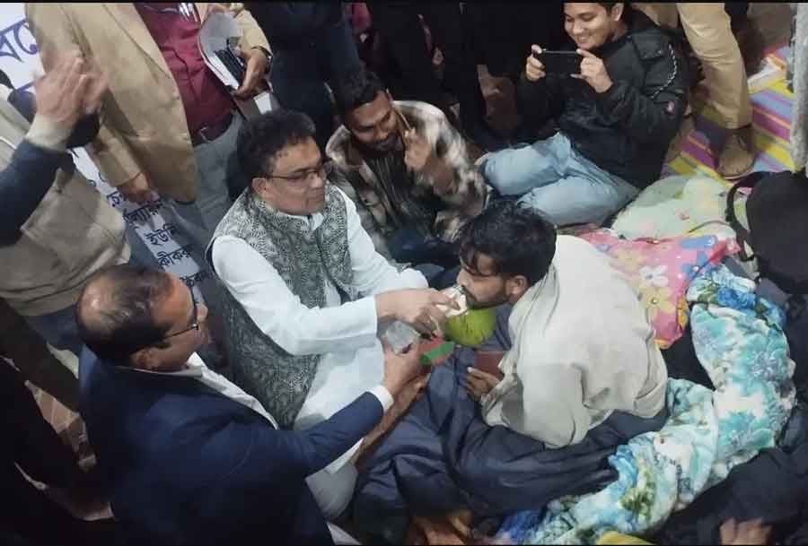 ফলাফল পুনর্মূল্যায়নসহ তিন দফা দাবিতে আমরণ অনশন কর্মসূচি পালন করা জাহাঙ্গীরনগর বিশ্ববিদ্যালয়ের আইন অনুষদের তিন শিক্ষার্থী তাঁদের অনশন ভেঙেছেন। সোমবার রাত পৌনে দুইটার দিকে বিশ্ববিদ্যালয়ের নতুন প্রশাসনিক ভবনের সামনে ডাবের পানি পান করে তাঁরা এই কর্মসূচি শেষ করেন।