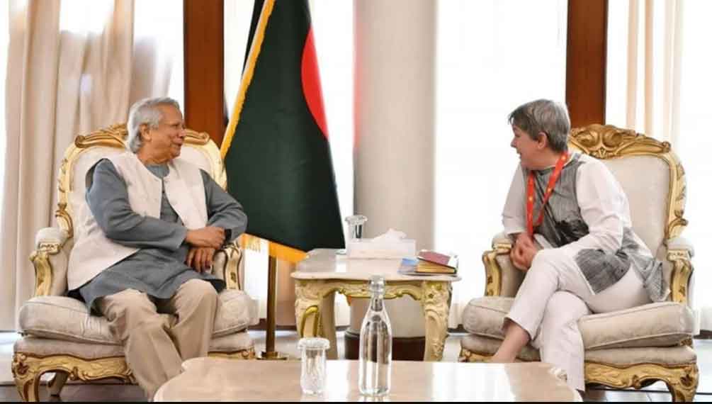 রোববার (৮ ডিসেম্বর) ঢাকার রাষ্ট্রীয় অতিথি ভবন যমুনায় ফেসবুকের মূল সংস্থা মেটার মানবাধিকার নীতি বিষয়ক পরিচালক মিরান্ডা সিসন্সের সঙ্গে এক বৈঠকে প্রধান উপদেষ্টা ড. মুহাম্মদ ইউনূস বাংলাদেশবিরোধী বিভ্রান্তিমূলক প্রচারণা রোধে মেটার সহযোগিতা চেয়েছেন।