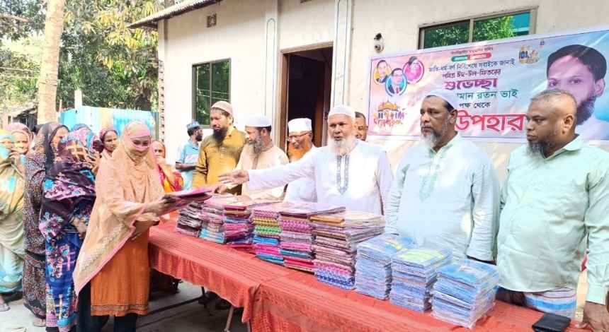 অসহায় ও দুস্থ মানুষের মাঝে “ঈদের আনন্দ ছড়িয়ে দিতে” প্রায় ৩ শতধিক নারী-পুরুষের মাঝে শাড়ি, লুঙ্গি, থ্রি পিস ও পাঞ্জী বিতরণ করা হয়েছে।