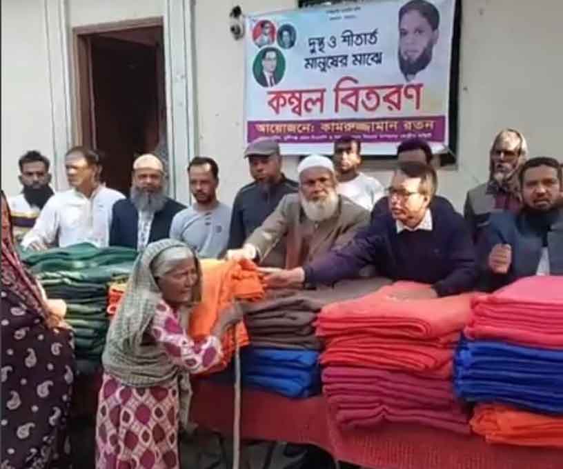 মুন্সীগঞ্জে শীতার্তদের মাঝে বিএনপি নেতার কম্বল বিতরণ