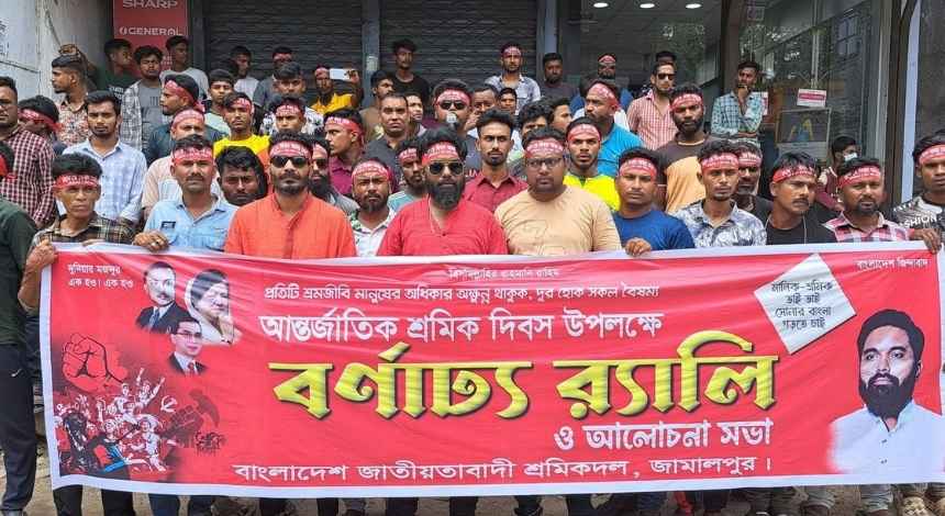 মহান মে দিবস উপলক্ষে শ্রমিকদল, জামালপুর জেলা শাখার আয়োজনে এক বর্ণাঢ্য র্যালি ও আলোচনা সভা অনুষ্ঠিত হয়েছে। বৃহস্পতিবার (০১ মে) স্টেশন রোডস্থ দলীয় কার্যালয় থেকে র্যালিটি বের হয়ে শহরের গুরুত্বপূর্ণ সড়ক প্রদক্ষিণ করে শহীদ হারুন সড়কে সংক্ষিপ্ত সমাবেশের মধ্য দিয়ে অনুষ্ঠানের সমাপ্তি ঘটে।