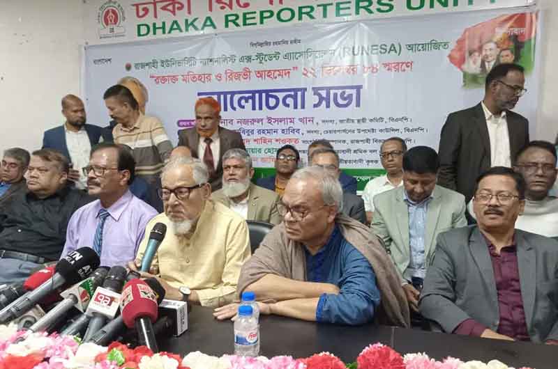 আলোচনা সভায় ভারত সরকারের ভূমিকা নিয়েও প্রশ্ন তোলেন তিনি। রিজভী বলেন, ‘ভারত গণতান্ত্রিক দেশ হয়েও শেখ হাসিনার মতো একজনকে আশ্রয় দেয়, যা নৈতিকতার সঙ্গে সাংঘর্ষিক। ভারতের নীতি শেখ হাসিনার মাধ্যমে বাংলাদেশে বাস্তবায়নের চেষ্টা চলছে।’ তিনি আরও অভিযোগ করেন, শেখ হাসিনা পালিয়ে যাওয়ার পর দেশের নতুন নেতৃত্বকে বিশ্ব সম্প্রদায় স্বীকৃতি দিলেও ভারত তা করতে দেরি করেছে।