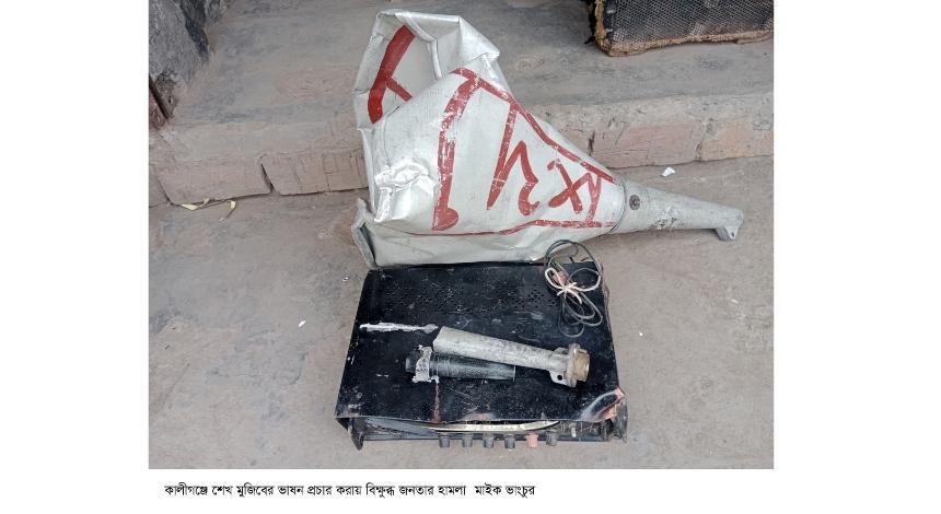 শেখ মুজিবের ভাষণ প্রচার করায় বিক্ষুব্ধ ছাত্র জনতা হামলা চালিয়ে একজনকে আহত ও মাইক ভাংচুর করেছে। বুধবার সকাল ৯ টার দিকে ঝিনাইদহের কালীগঞ্জে মুক্তিযোদ্ধা সংসদ ভবনে মহান স্বাধীনতা ও জাতীয় দিবসে মাইকে শেখ মুজিবের ভাষণ চলাকালে এ ঘটনা ঘটে। হামলায় মুক্তিযোদ্ধা সংসদের কেয়ার টেকার সাগর হোসেন নামে ১জন আহত ও মাইকের কিছু অংশ নিয়ে গেছে বিক্ষুব্ধ ছাত্র জনতা।