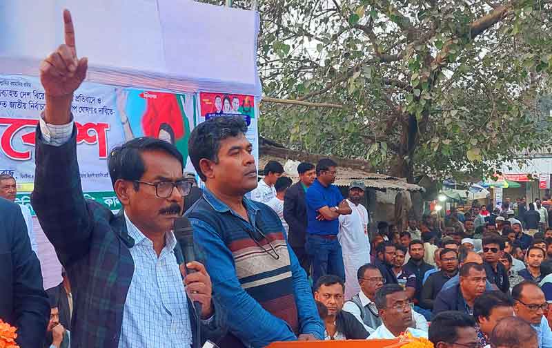 বুধবার বিকেলে ঝিনাইদহের কালীগঞ্জ উপজেলার চাপরাইল বাজারে ৪নং নিয়ামতপুর ইউনিয়ন বিএনপি আয়োজিত ফ্যাসিস্ট গণহত্যাকারী পতিত স্বৈরাচার হাসিনার অব্যাহত দেশ বিরোধী ষড়যন্ত্রের প্রতিবাদে ও নিত্য প্রয়োজনীয় দ্রব্যের মূল্য সহনীয় রাখাসহ দ্রুত জাতীয় নির্বাচনের রোডম্যাপ ঘোষণার দাবিতে এক সমাবেশে এমন মন্তব্য করেন তিনি।