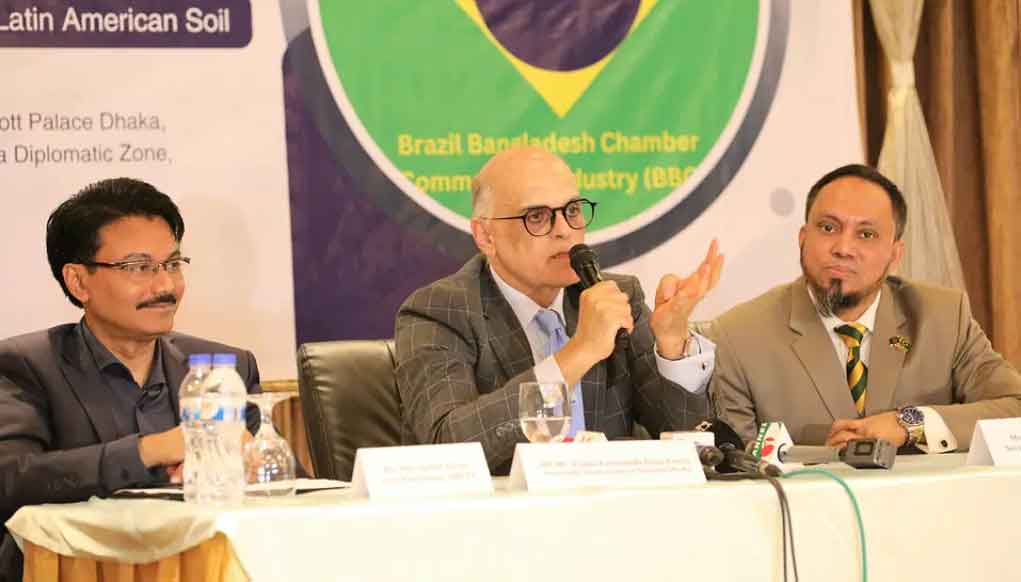 সংবাদ সম্মেলনে ব্রাজিল বাংলাদেশ চেম্বার অব কমার্স অ্যান্ড ইন্ডাস্ট্রি (বিবিসিসিআই) সহ-সভাপতি মো. সাইফুল আলম জানান, আগামী ১৫ থেকে ১৮ জুন ব্রাজিলের সাও পাওলো শহরে প্রথমবারের মতো ‘মেড ইন বাংলাদেশ এক্সপো ২০২৫’ অনুষ্ঠিত হবে।