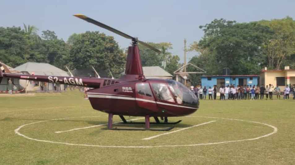 চাঁদপুরের মতলব উত্তর উপজেলায় এক ব্যতিক্রমী দৃশ্যের সাক্ষী হলো স্থানীয় বাসিন্দারা। সৌদি আরবের এক নাগরিককে নিয়ে হেলিকপ্টারে করে নিজের গ্রামে ঘুরতে এসেছেন প্রবাসী মো. মোবারক হোসেন।