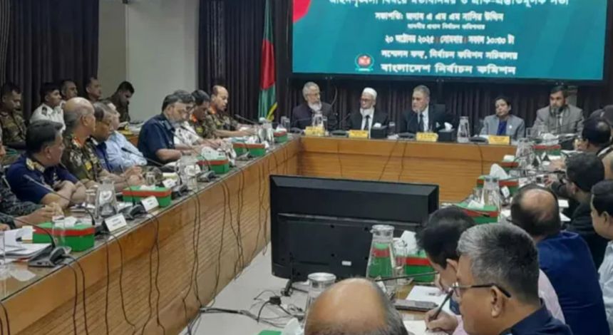 ইসি সদস্য এ এম এম নাসির উদ্দিনের নেতৃত্বে অনুষ্ঠিত এই বৈঠকে চারজন নির্বাচন কমিশনার ও ইসি সচিবসহ আইনশৃঙ্খলা রক্ষাকারী সংস্থার শীর্ষ কর্মকর্তারা উপস্থিত ছিলেন। বৈঠকে নির্বাচনের সময় আইনশৃঙ্খলা পরিস্থিতি নিয়ন্ত্রণ, সংখ্যালঘু নিরাপত্তা, অস্ত্র নিয়ন্ত্রণ, সামাজিক যোগাযোগমাধ্যমে ভুয়া তথ্য প্রচার প্রতিরোধসহ নানাবিষয়ে আলোচনা হয়।