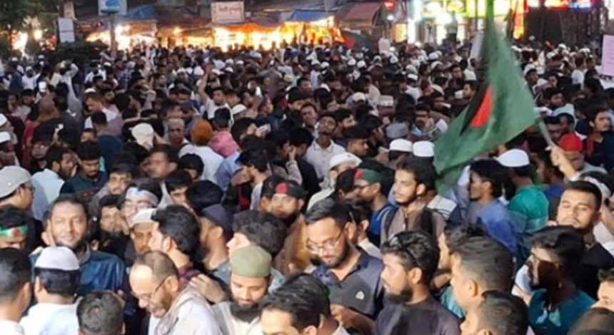শুক্রবার সকাল ৮টার দিকে এনসিপির মুখ্য সমন্বয়ক নাসীরুদ্দীন পাটওয়ারী ঘোষণা দেন—জুমার পর হবে বড় জমায়েত। পাঁচটি পিকআপ একত্র করে সামিয়ানা দিয়ে তৈরি করা হয় অস্থায়ী মঞ্চ, যেখান থেকে পুরো কর্মসূচি পরিচালিত হয়।