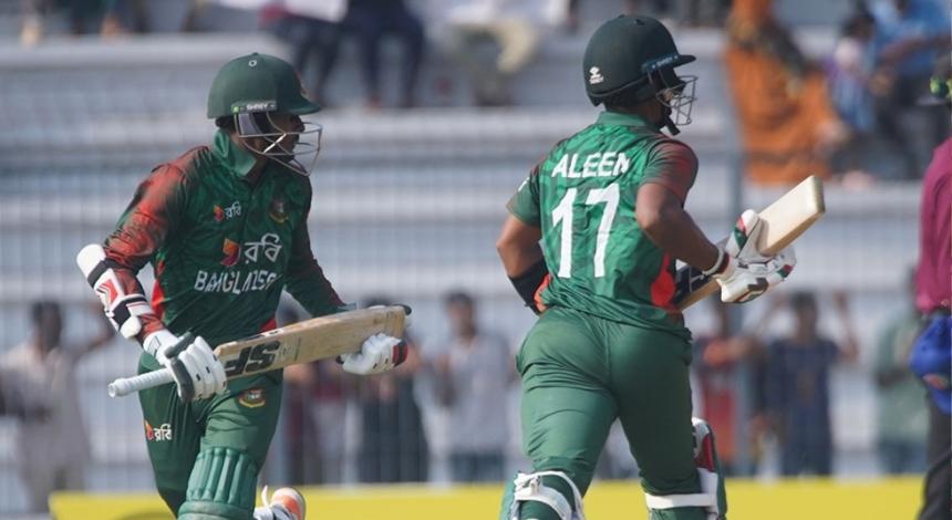 ২৭৬ রানের লক্ষ্য তাড়া করতে নেমে শুরু থেকেই ধুঁকতে থাকে স্বাগতিকরা। ইনিংসের প্রথম দিকেই মাত্র ৪৫ রানে ৩ উইকেট হারায় বাংলাদেশ। এরপর চতুর্থ উইকেটে কালাম সিদ্দিকী ও রিজান হোসেন দলের হয়ে প্রতিরোধ গড়ে তোলেন। দুজনের ব্যাটে আসে ৯৩ রানের দারুণ জুটি। রিজান ৫০ বলে ৫৩ রান করে আউট হন। তবে এরপর থেকেই শুরু হয় বাংলাদেশের ব্যাটিং বিপর্যয়। শেষ ৩৫ রানে হারায় ৭ উইকেট।