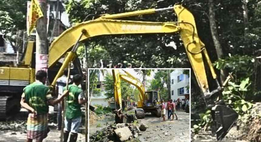 শুক্রবার থেকে শুরু হওয়া অভিযানে খালের দুই পাশের একাধিক পাকা ও অস্থায়ী অবৈধ স্থাপনা গুঁড়িয়ে দেওয়া হয়।