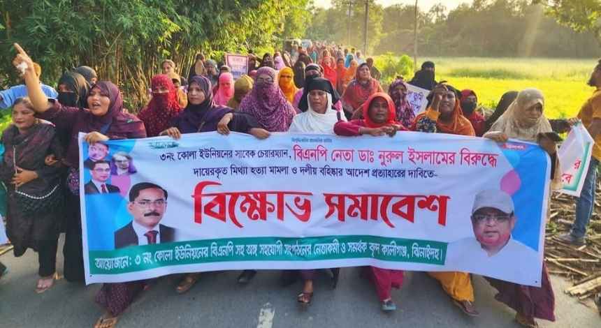 ঝিনাইদহের কালীগঞ্জ উপজেলার কোলা ইউনিয়নে বিএনপি নেতার বিরুদ্ধে দায়েরকৃত মিথ্যা মামলা ও সাময়িক বহিষ্কারাদেশ প্রত্যাহারের দাবিতে বিক্ষোভ মিছিল ও প্রতিবাদ সভা অনুষ্ঠিত হয়েছে।