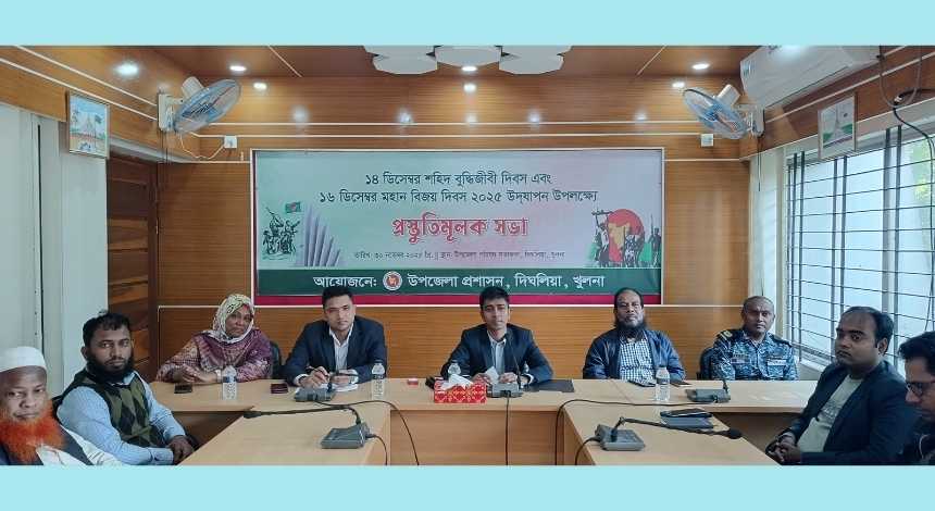 খুলনার দিঘলিয়ায় শহীদ বুদ্ধিজীবী দিবস ও মহান বিজয় দিবস যথাযোগ্য মর্যাদায় পালন করতে প্রস্তুতিমূলক সভা অনুষ্ঠিত হয়েছে। রবিবার (৩০ নভেম্বর) সকাল ১১টায় উপজেলা পরিষদের কনফারেন্স রুমে এ সভার আয়োজন করা হয়। সভায় সভাপতিত্ব করেন উপজেলা নির্বাহী অফিসার মোঃ হারুন অর রশিদ।