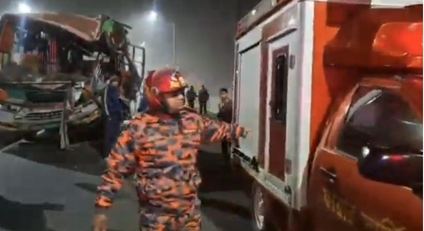 মুন্সীগঞ্জের শ্রীনগর উপজেলায় ঢাকা–মাওয়ামুখী এক্সপ্রেসওয়েতে যাত্রীবাহী বাস ও ট্রাকের সংঘর্ষে অন্তত ৬ জন আহত হয়েছেন। ঘন কুয়াশার কারণে বাসটি নিয়ন্ত্রণ হারিয়ে দুর্ঘটনাটি ঘটে বলে জানিয়েছে ফায়ার সার্ভিস।