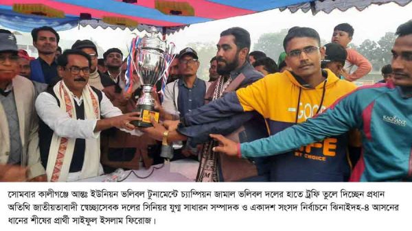 ঝিনাইদহের কালীগঞ্জ আন্তঃ ইউনিয়ন ভলিবল টুর্নামেন্টে জামাল ইউনিয়ন ভলিবল দল চ্যাম্পিয়ন হয়েছে। সোমবার সকালে সরকারী নলডাঙ্গা ভূষণস্কুল মাঠে টুর্নামেন্টের উদ্বোধন করেন প্রধান অতিথি জাতীয়তাবাদী স্বেচ্ছাসেবক দলের সিনিয়র যুগ্ম সাধারন সম্পাদক