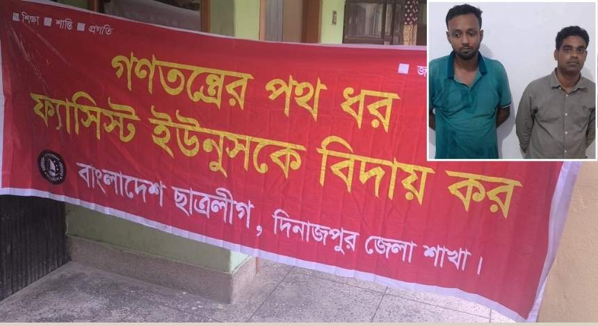 দিনাজপুরের কাহারোল উপজেলায় নিষিদ্ধ ঘোষিত ছাত্রলীগের দুই কর্মীকে গ্রেফতার করেছে পুলিশ। গত ১ আগস্ট ২০২৫, শুক্রবার সন্ধ্যায় কাহারোল থানা পুলিশের একটি টহল দল গোপন সংবাদের ভিত্তিতে চেকপোস্টে অভিযান চালিয়ে তাদের গ্রেফতার করে।