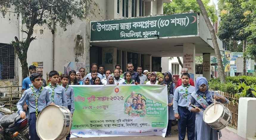 “শিশু থেকে প্রবীণ, পুষ্টিকর খাবার সার্বজনীন” এই প্রতিপাদ্যকে সামনে রেখে খুলনার দিঘলিয়া উপজেলা স্বাস্থ্য কমপ্লেক্সের আয়োজনে অনুষ্ঠিত হয়েছে জাতীয় পুষ্টি সপ্তাহ ২০২৫। মঙ্গলবার (২৮ মে) বেলা ১১টায় আনুষ্ঠানিকভাবে কর্মসূচির উদ্বোধন করেন উপজেলা নির্বাহী অফিসার (ইউএনও) আরিফুল ইসলাম।