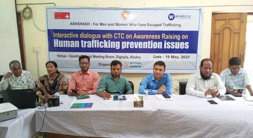 মানব পাচার প্রতিরোধে জনসচেতনতা বৃদ্ধির লক্ষ্যে খুলনার দিঘলিয়া উপজেলায় উন্নয়ন সংস্থা রূপান্তরের আয়োজনে অনুষ্ঠিত হলো একটি ইন্টারেক্টিভ ডায়ালগ। ‘আশ্বাস’ প্রকল্পের আওতায় আয়োজিত এই গুরুত্বপূর্ণ সভাটি ১৯ মে সোমবার সকাল ১০টায় উপজেলা পরিষদ সভাকক্ষে অনুষ্ঠিত হয়।