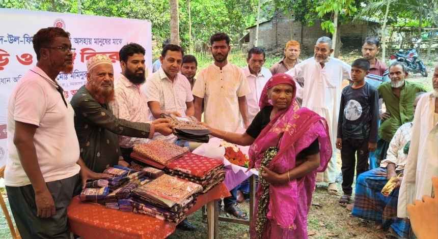 রবিবার সকালে উপজেলার রঘুনাথপুর ইউনিয়নের সাবেক নিত্যানন্দপুর গ্রামে রফিজ-রাফেলা ফাউন্ডেশন-এর উদ্যোগে এই ঈদ উপহার বিতরণ কর্মসূচি অনুষ্ঠিত হয়। এতে এলাকার অসহায় ও নিম্নআয়ের বহু পরিবার অংশগ্রহণ করেন এবং তাদের হাতে তুলে দেওয়া হয় নতুন শাড়ি ও লুঙ্গি।