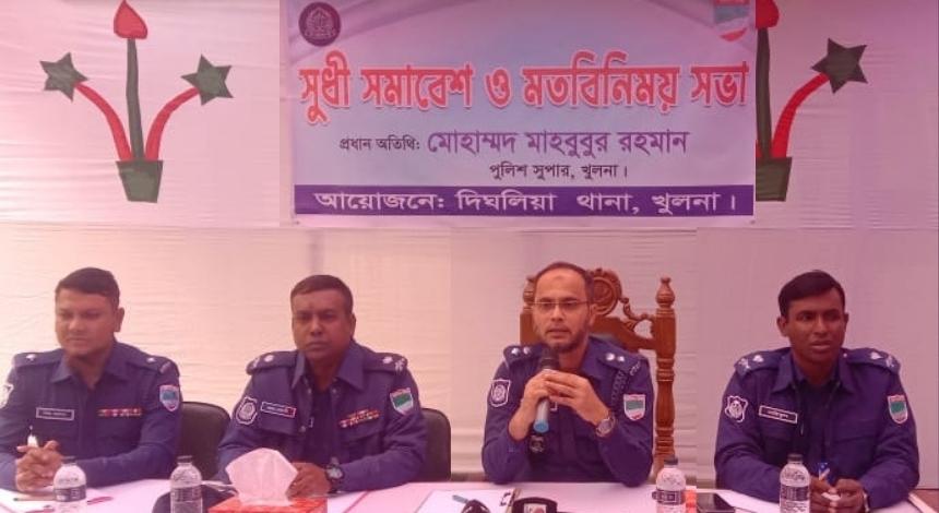 রবিবার (৪ জানুয়ারি) দিঘলিয়া থানার আয়োজনে অনুষ্ঠিত সভায় প্রধান অতিথির বক্তব্যে খুলনা জেলা পুলিশ সুপার (এসপি) মোহাম্মদ মাহবুবুর রহমান বলেন, “পুলিশ জনগণের বন্ধু। আইন-শৃঙ্খলা রক্ষা শুধুমাত্র পুলিশের একক দায়িত্ব নয়। জনগণের সক্রিয় সহযোগিতা ছাড়া অপরাধ দমন ও সামাজিক নিরাপত্তা নিশ্চিত করা সম্ভব নয়।”