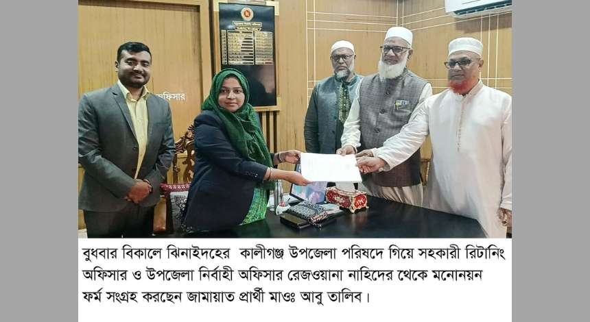 আসন্ন ত্রয়োদশ জাতীয় সংসদ নির্বাচন সামনে রেখে ঝিনাইদহ-৪ (কালীগঞ্জ) আসনে নির্বাচনী তৎপরতা শুরু হয়েছে। এরই ধারাবাহিকতায় বাংলাদেশ জামায়াতে ইসলামীর মনোনীত প্রার্থী হিসেবে কালীগঞ্জ উপজেলা জামায়াতের নায়েবে আমীর মাওলানা আবু তালেব আনুষ্ঠানিকভাবে মনোনয়ন ফরম সংগ্রহ করেছেন।