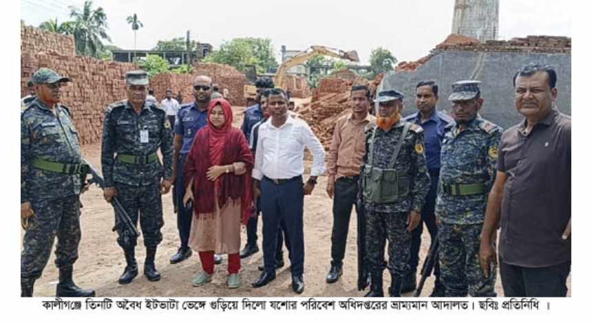 ঝিনাইদহের কালীগঞ্জে তিনটি অবৈধ ইটভাটা ধ্বংস করেছে যশোর পরিবেশ অধিদপ্তরের ভ্রাম্যমান আদালতের একটি টিম। বুধবার সকাল থেকে দুপুর পর্যন্ত পরিচালিত এ অভিযানে পৌর এলাকার শিবনগর ও ইশ্বরবা অঞ্চলে ইটভাটাগুলো ভেঙে গুড়িয়ে দেওয়া হয়।