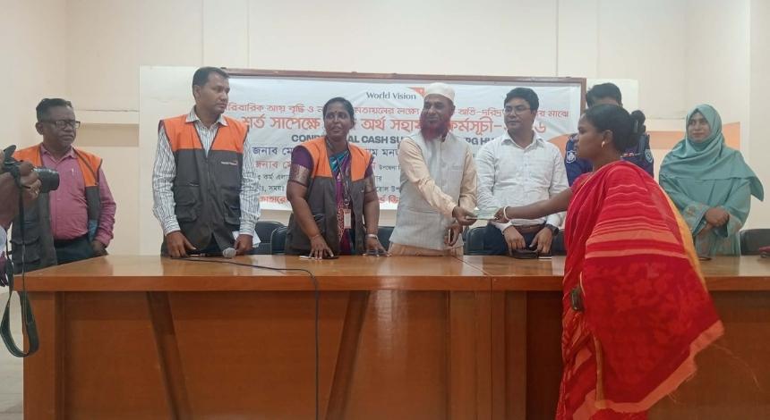 দিনাজপুরের কাহারোল উপজেলায় পারিবারিক আয় বৃদ্ধি এবং নারীর ক্ষমতায়ন নিশ্চিত করতে অতি দরিদ্র পরিবারের মাঝে শর্তসাপেক্ষে নগদ অর্থ সহায়তা প্রদান করেছে ওয়ার্ল্ড ভিশন বাংলাদেশ। স্থানীয়ভাবে পিছিয়ে পড়া পরিবারগুলোর অর্থনৈতিক সক্ষমতা বাড়াতে এই উদ্যোগ গ্রহণ করা হয়েছে।
