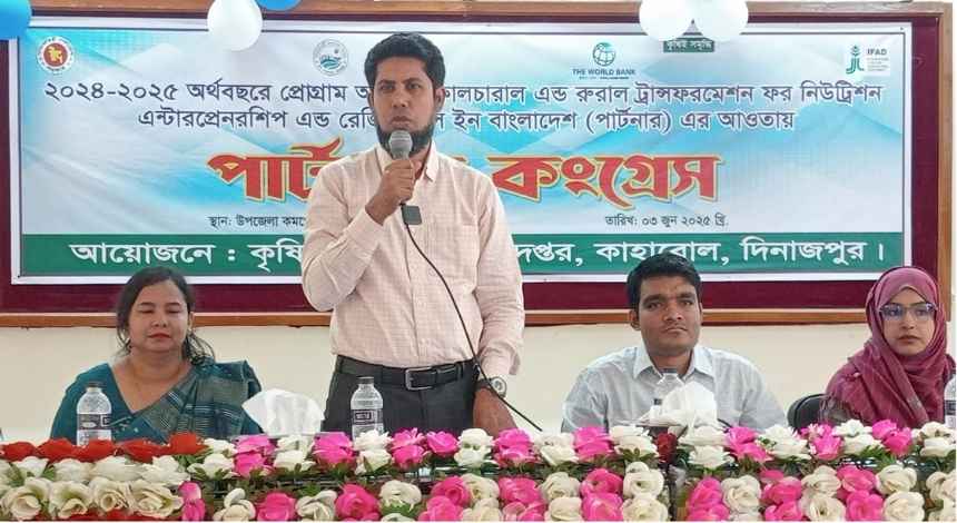 দিনাজপুরের কাহারোলে কৃষি উদ্যোক্তা সৃষ্টি ও উত্তম কৃষি চর্চাকে উৎসাহিত করার লক্ষ্যে পার্টনার কংগ্রেস ২০২৫ অনুষ্ঠিত হয়েছে। প্রোগ্রাম অন এগ্রিকালচারাল এন্ড রুরাল ট্রান্সফরমেশন ফর নিউট্রিশন এন্টারপ্রেনারশিপ এন্ড রেসিলিয়েন্স ইন বাংলাদেশ (PARTNER) প্রকল্পের আওতায় আয়োজিত এই দিনব্যাপী কংগ্রেসে কৃষকদের জন্য প্রশিক্ষণ, মতবিনিময় এবং প্রশ্ন-উত্তর পর্ব ছিল অন্যতম আকর্ষণ।