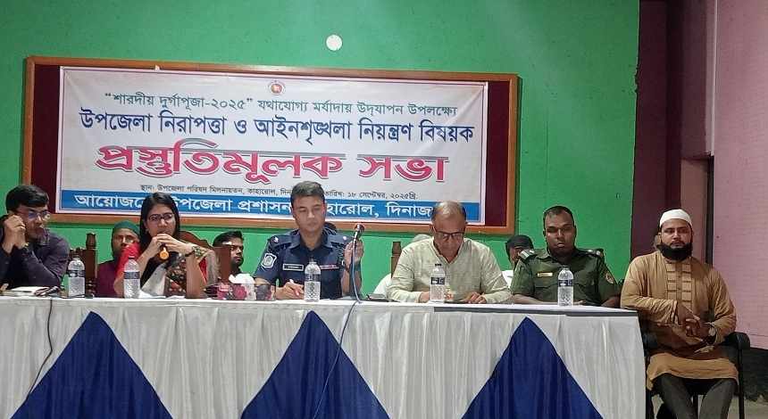 দিনাজপুরের কাহারোলে শারদীয় দুর্গাপূজা উপলক্ষে উপজেলা প্রশাসনের উদ্যোগে আইনশৃঙ্খলা ও নিরাপত্তা নিয়ন্ত্রণ বিষয়ক প্রস্তুতিমূলক সভা অনুষ্ঠিত হয়েছে। বৃহস্পতিবার (১৮ সেপ্টেম্বর ২০২৫) বিকেলে কাহারোল উপজেলা অডিটোরিয়াম হলে এ সভার আয়োজন করা হয়।