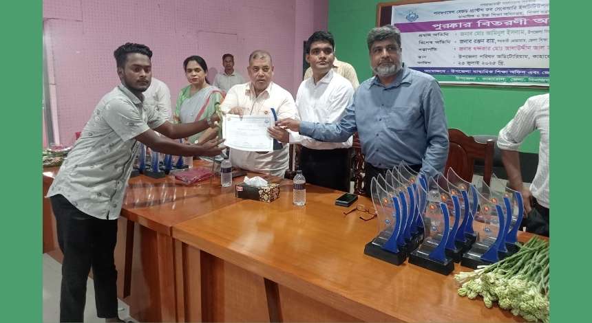 দিনাজপুরের কাহারোলে এসএসসি ও এইচএসসি পরীক্ষায় কৃতিত্বের সাথে উত্তীর্ণ ২৯ জন শিক্ষার্থীর মাঝে পুরস্কার ও আর্থিক সহায়তা প্রদান করা হয়েছে। বুধবার (২৩ জুলাই ২০২৫) কাহারোল উপজেলা অডিটোরিয়াম হলে উপজেলা মাধ্যমিক শিক্ষা অফিস ও জেলা শিক্ষা অফিসের যৌথ উদ্যোগে আয়োজিত এ অনুষ্ঠানে কৃতি শিক্ষার্থীদের হাতে পুরস্কার তুলে দেওয়া হয়।