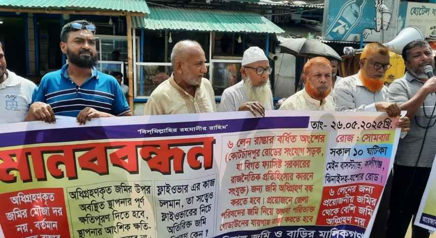 বক্তারা বলেন, “প্রায় ৩ বছর ধরে ঝিনাইদহ-যশোর মহাসড়কের ৪৭ কিলোমিটার ছয় লেন প্রকল্পে জমি অধিগ্রহণ চলছে। অথচ এখনো কেউ ক্ষতিপূরণ পাননি।”