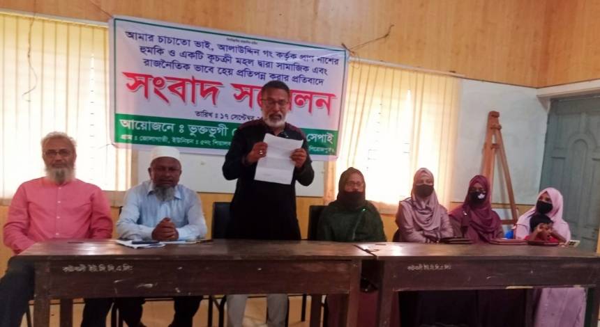 সংবাদ সম্মেলনে আলম সেপাই অভিযোগ করেন, তার চাচাত ভাই আলাউদ্দিন দীর্ঘদিন ধরে পৈত্রিক ও কবলাইকৃত সম্পত্তি দখলের জন্য বিভিন্ন সময় প্রাণনাশের হুমকি ও হামলার চেষ্টা চালাচ্ছে। তিনি জানান, হৃদরোগে আক্রান্ত হয়ে বাইপাস সার্জারি করায় শারীরিকভাবে দুর্বল হওয়ায় বর্তমানে দীর্ঘ ১০ বছর ধরে তিনি ভয়ে পৈত্রিক ভিটাবাড়ি ছাড়া রয়েছেন।