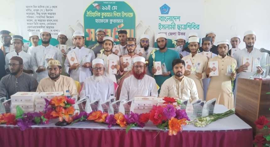তিনি আরও বলেন, ছাত্রশিবির প্রতিষ্ঠার পর থেকেই কুরআনের আলোকে সমাজ পরিবর্তনের আন্দোলন করে আসছে এবং এ পথে ইতোমধ্যে ২৩৪ জন শহীদ হয়েছেন। তাদের রক্তের বিনিময়ে কুরআনের আইন প্রতিষ্ঠার লক্ষ্যে হাফেজদের নেতৃত্ব দিতে হবে।