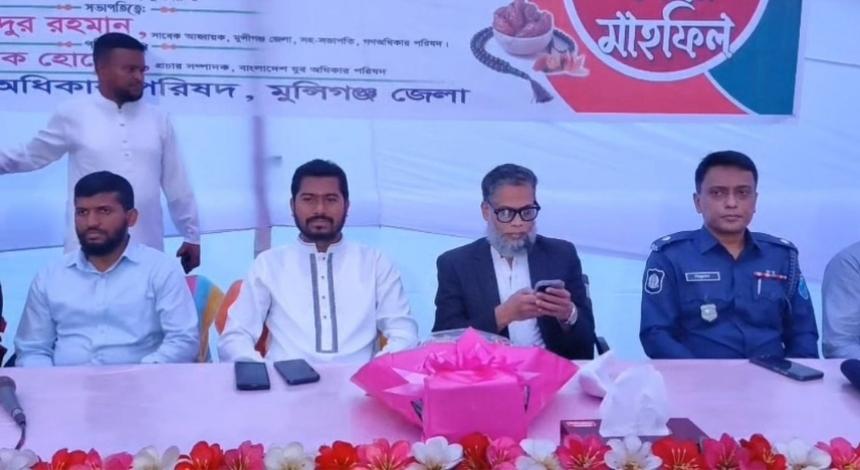 শুক্রবার (১৩ মার্চ) বিকেলে গজারিয়া উপজেলার হামদর্দ নগরে অবস্থিত হামদর্দ বিশ্ববিদ্যালয় বাংলাদেশ মাঠে মুন্সীগঞ্জ জেলা গণঅধিকার পরিষদ আয়োজিত ইফতার ও দোয়া মাহফিলে প্রধান অতিথির বক্তব্যে তিনি এসব কথা বলেন।
