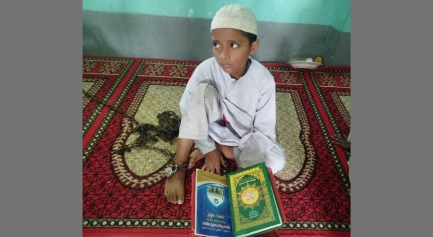 পিরোজপুরের ভাণ্ডারিয়া উপজেলার ধাওয়া ইউনিয়নের দারুল উলুম হাফিজিয়া কওমি মাদ্রাসা থেকে পায়ে শিকল বাঁধা অবস্থায় এক শিশু শিক্ষার্থীকে উদ্ধার করেছে স্থানীয় প্রশাসন। উদ্ধার হওয়া শিশুটির নাম ওসমান মল্লিক (৬)।