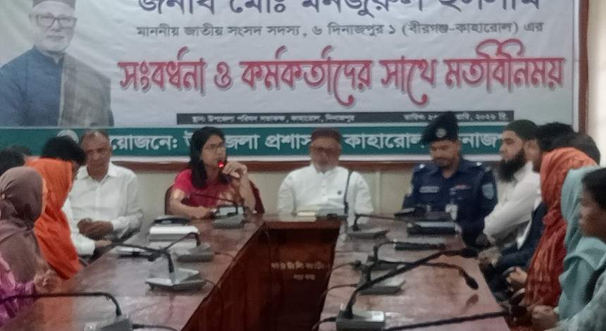 সোমবার (২৩ ফেব্রুয়ারি) দুপুর ২টার দিকে উপজেলা প্রশাসনের আয়োজনে উপজেলা পরিষদ সভাকক্ষে এ সভা অনুষ্ঠিত হয়। সভায় সভাপতিত্ব করেন উপজেলা নির্বাহী কর্মকর্তা মোছা: মোকলেদা খাতুন। প্রধান অতিথি হিসেবে উপস্থিত ছিলেন দিনাজপুর-১ (বীরগঞ্জ-কাহারোল) আসনের নবনির্বাচিত এমপি মনজুরুল ইসলাম।